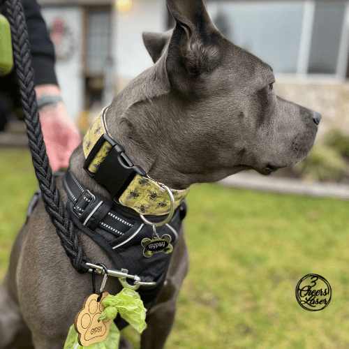 Leash, harness, or anywhere else you can think of.