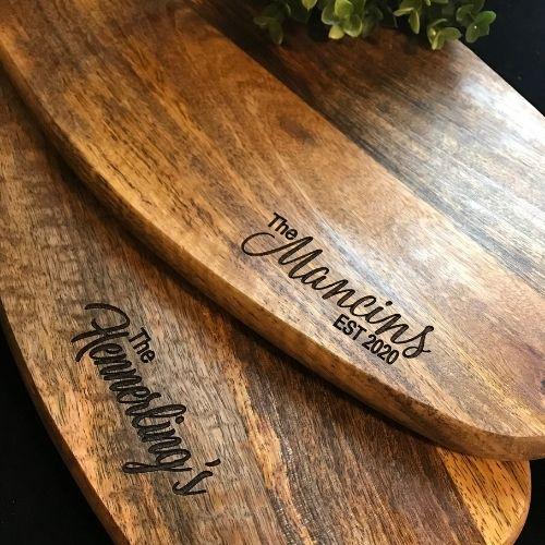Engraved your name or someone you love on your perfectly rich mango charcuterie board. Beauty and deliciousness that will bring you and your family together