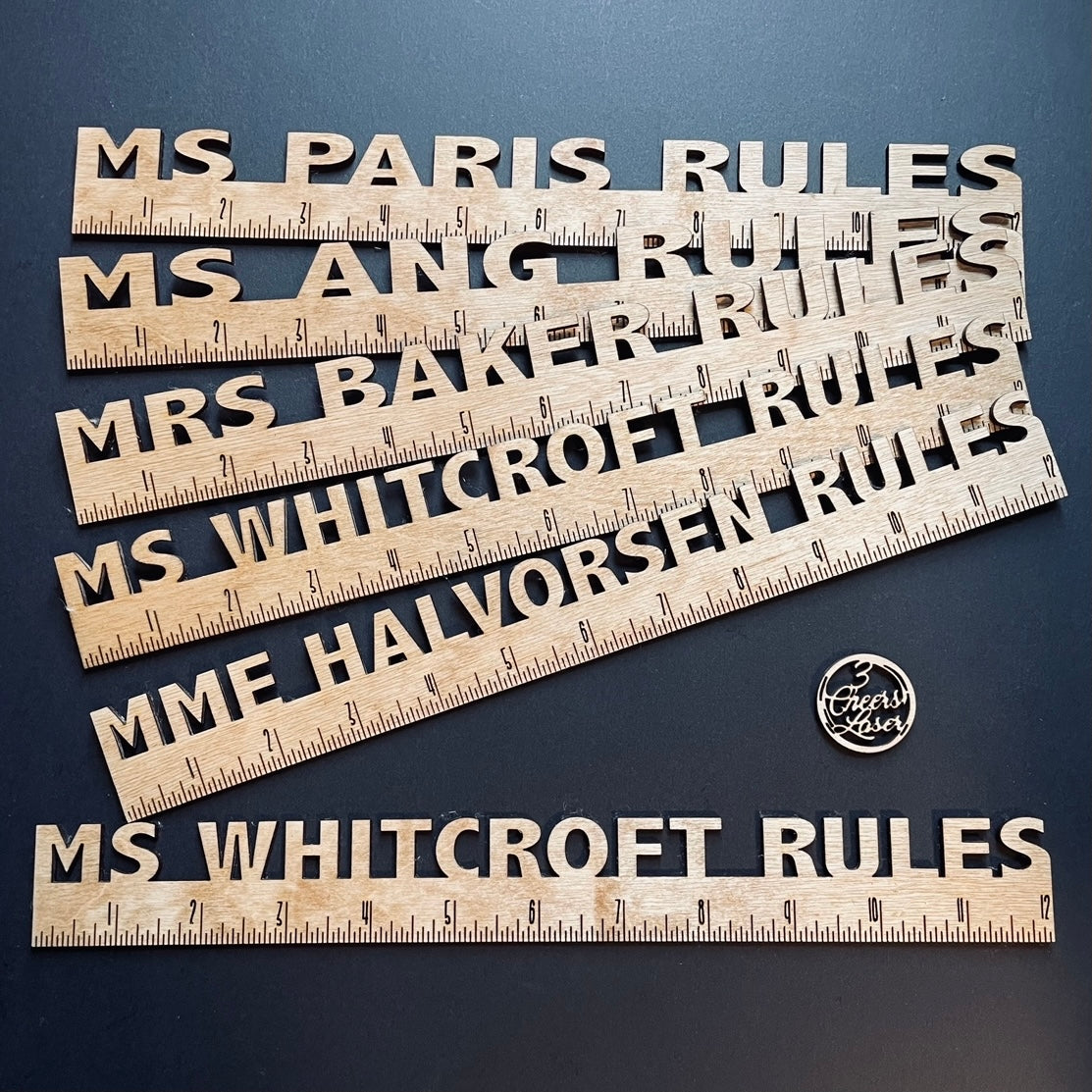 As each rulers is custom made, the letter width will be changed to fit the 12" ruler depending on the amount of letters.