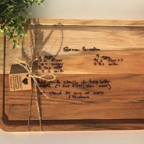 Imagine a family recipe is Grandma's handwriting on a beautiful chopping board, engraved into the board to treasure for a lifetime.